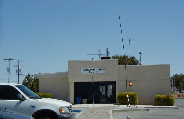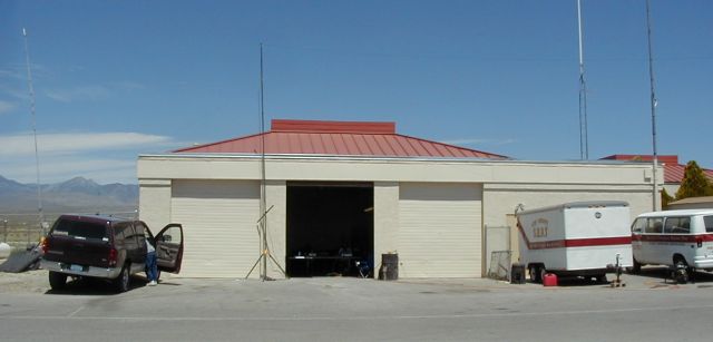 HF Transceivers were set up inside the open garage door and in the office area (inside the building on the right).